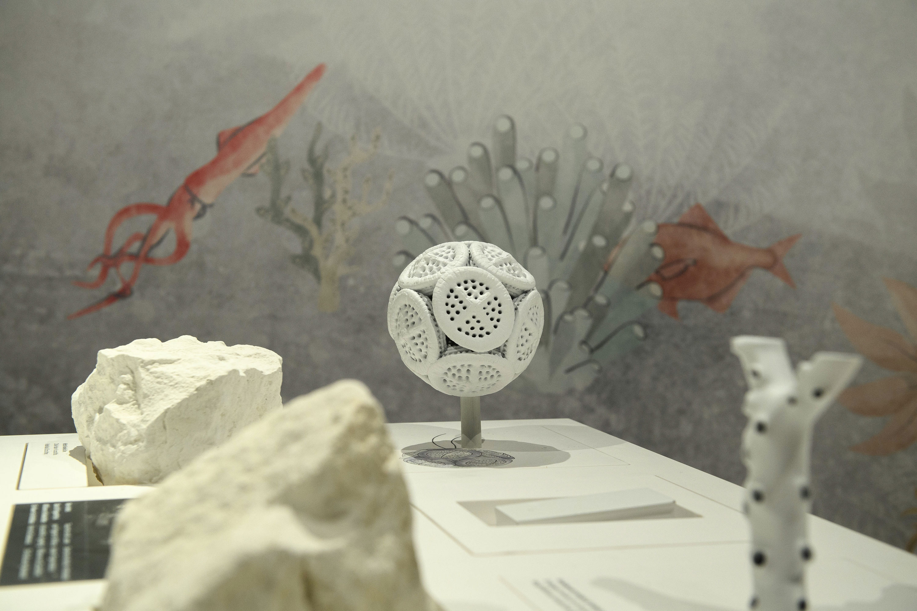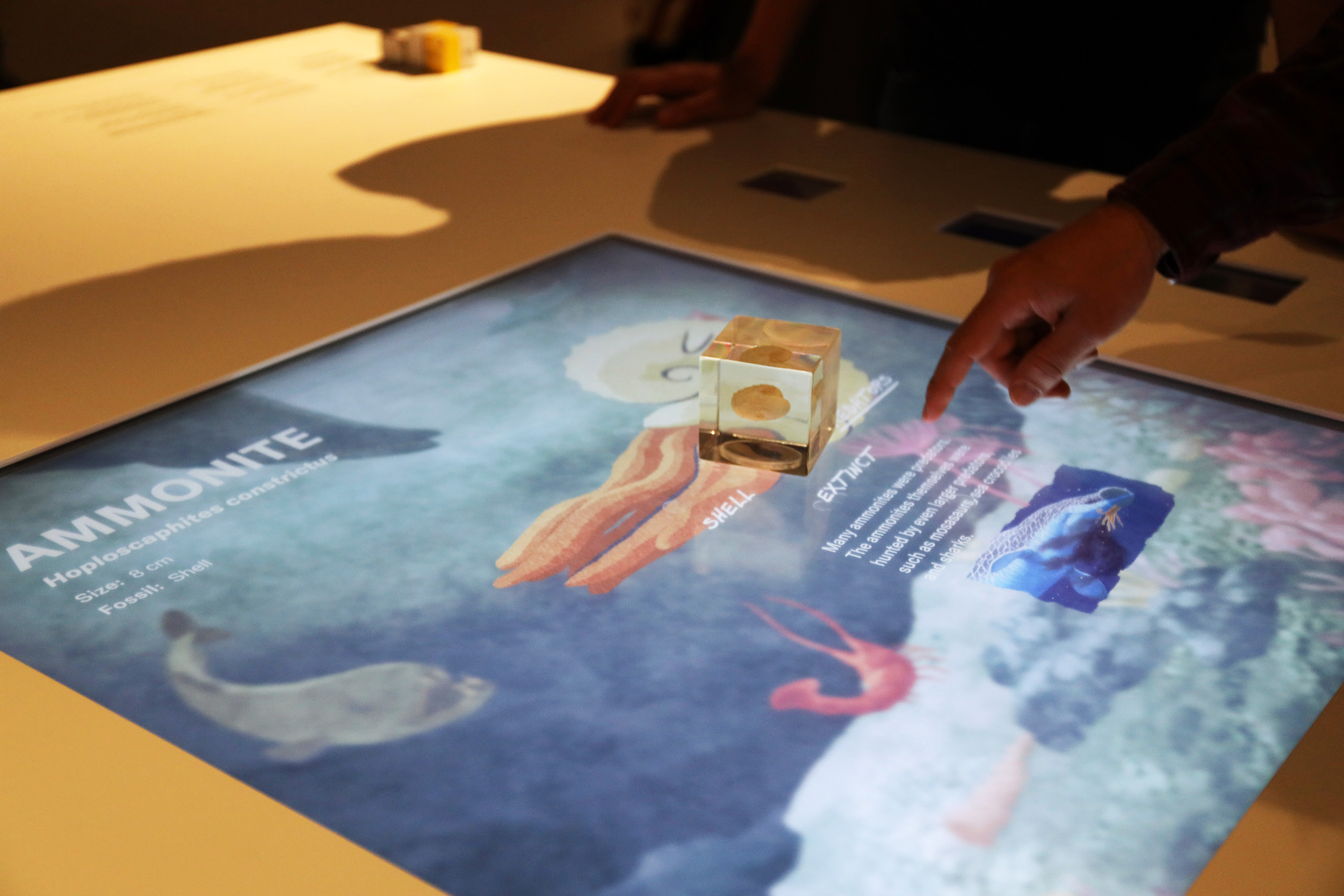 The exhibition is divided into two parts. In the World Heritage Hall, the story is told chronologically. In this playful space visitors go on a multi-sensory exploration and dive into the scientific side of the story. An immersive film tells the story about the dramatic extinction and the survival of life on Earth. The film is partly projected on a huge cut-out of the cliff with the famous Fish Clay layer in the middle.